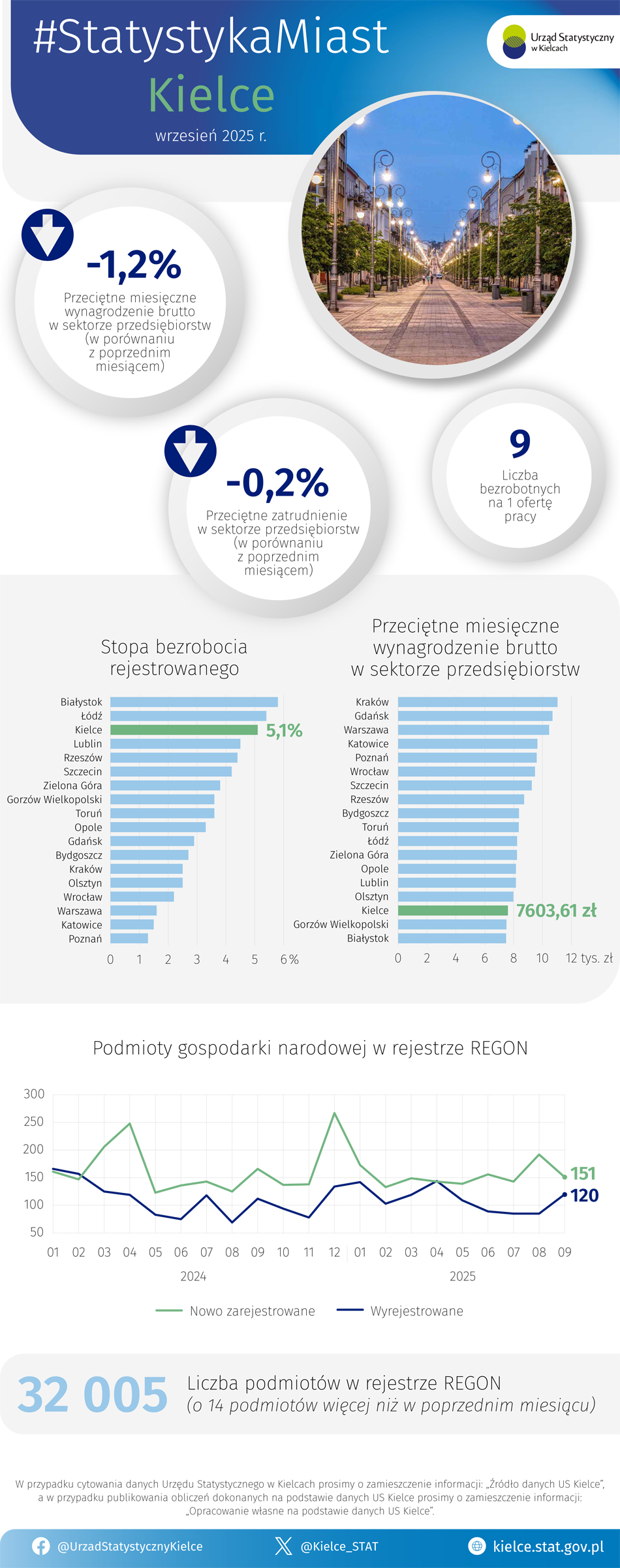 Statystyka Miast - wrzesień 2025 r. A A A 28.10.2025 Pliki do pobrania Statystyka Miast - wrzesień 2025 r. 0.29 MB Statystyka Miast - wrzesień 2025 r. 0.01 MB Statystyka Miast - wrzesień 2025 r. - tablice dla osób z dysfunkcją wzroku 0.02 MB
