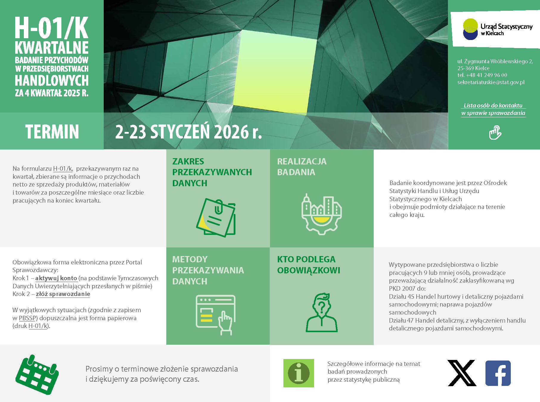 H-01/k Kwartalne badanie przychodów w przedsiębiorstwach handlowych za 4 kwartał 2025 r. – termin 2-23 STYCZEŃ 2026