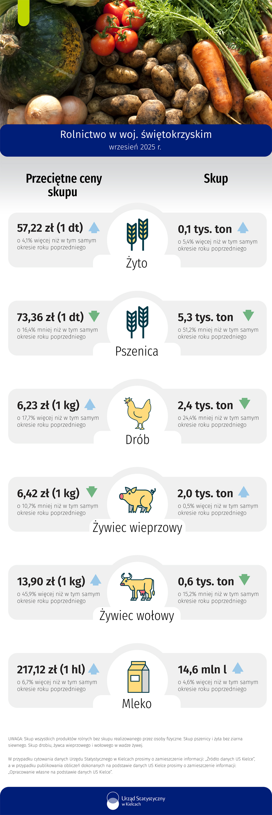 Rolnictwo w województwie świętokrzyskim - wrzesień 2025 r. A A A 28.10.2025 Pliki do pobrania Rolnictwo w województwie świętokrzyskim - wrzesień 2025 r. 1.10 MB Rolnictwo w województwie świętokrzyskim – wrzesień 2025 r. – tablice dla osób z dysfunkcją wzroku 0.02 MB