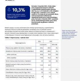 Badanie to dostarcza danych o obsadzonych i wolnych miejscach pracy (według stanu na ostatni dzień kwartału) oraz o nowo utworzonych i zlikwidowanych miejscach pracy (zgłoszonych od początku roku do końca kwartału).
